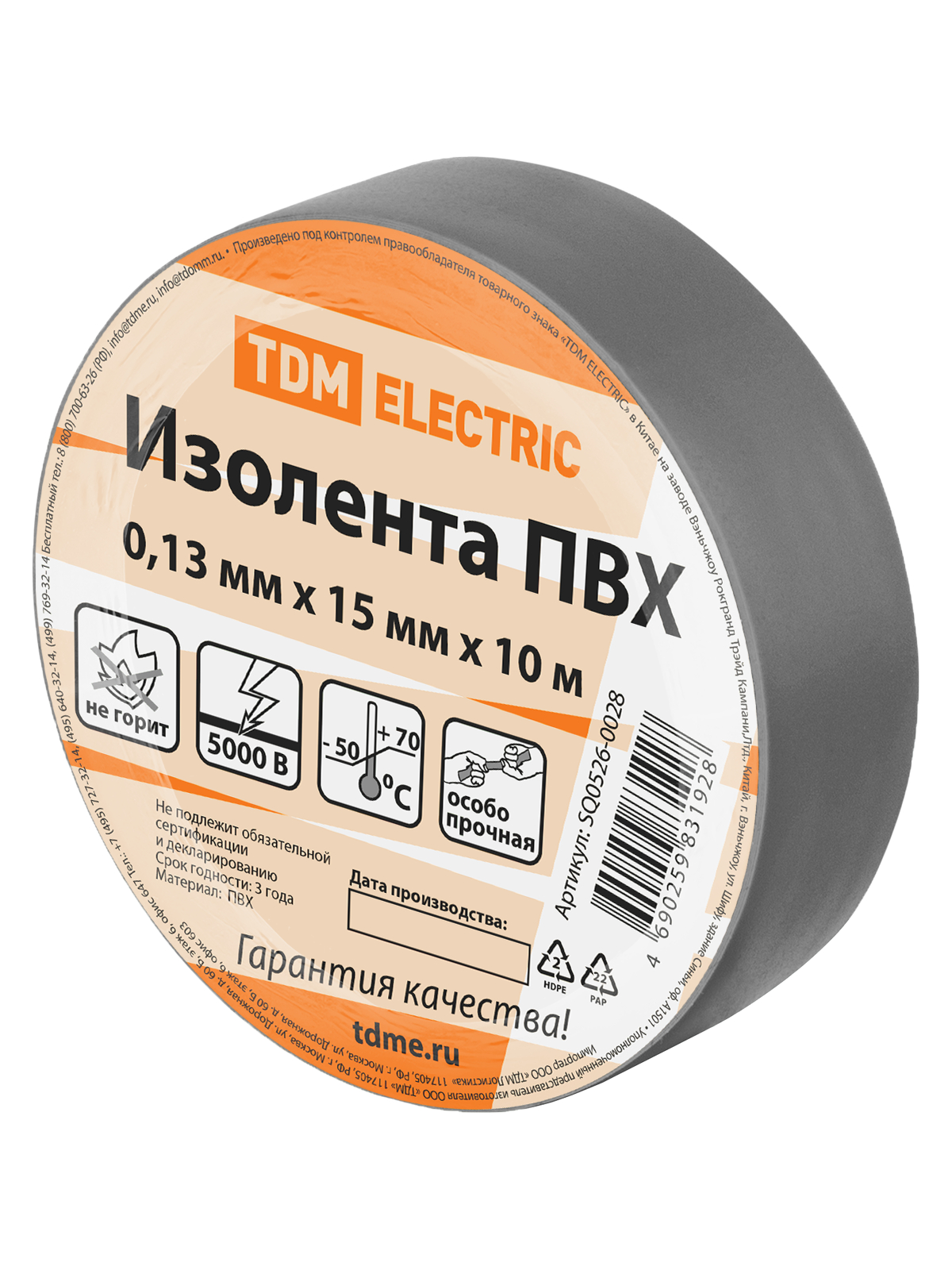 Tdm SQ0526-0028 Изолента ПВХ 0,13х15 мм Серая 10 м
