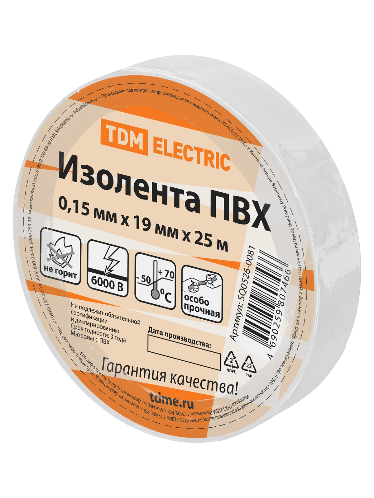Tdm SQ0526-0081 Изолента ПВХ 0,15х19 мм Белая 25 м