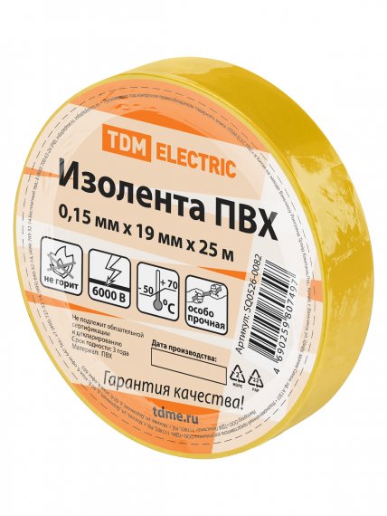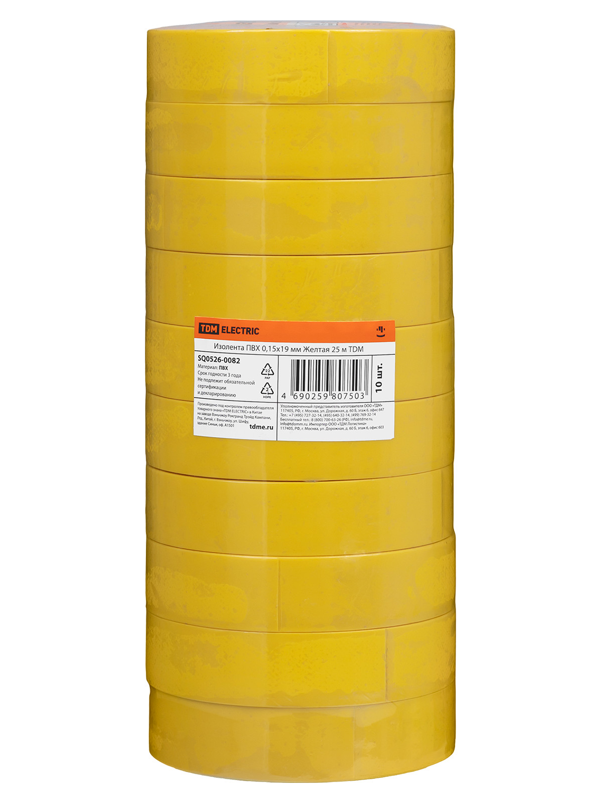 Tdm SQ0526-0082 Изолента ПВХ 0,15х19 мм Желтая 25 м