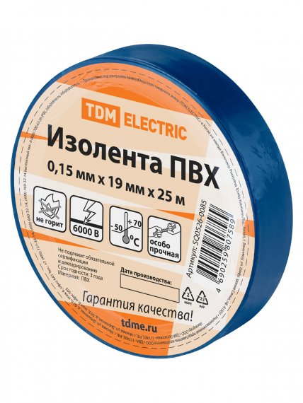 Tdm SQ0526-0085 Изолента ПВХ 0,15х19 мм Синяя 25 м