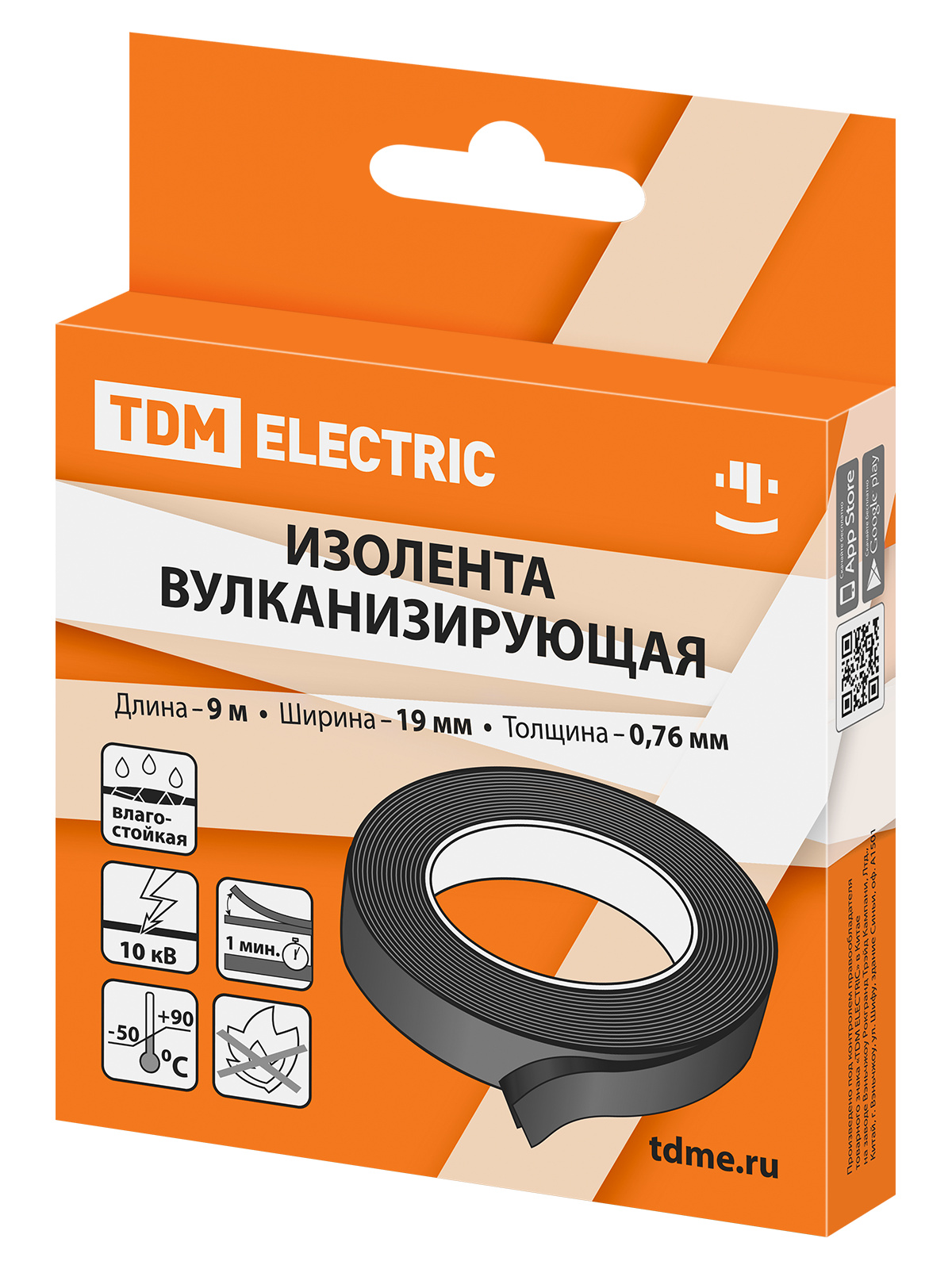 Изолента вулканизирующая 19 мм 9 метров (до 10 кВ) TDM