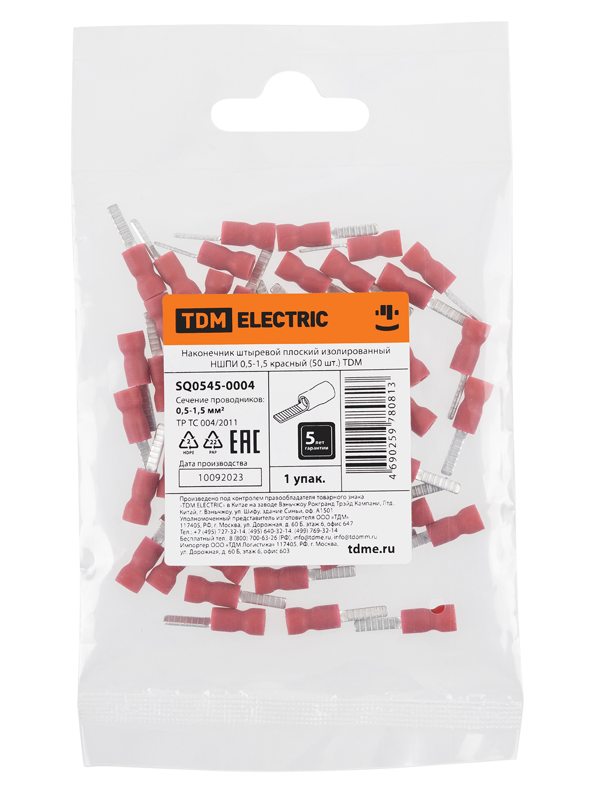 Tdm SQ0545-0004 Наконечник штыревой плоский изолированный НШПИ 0,5-1,5