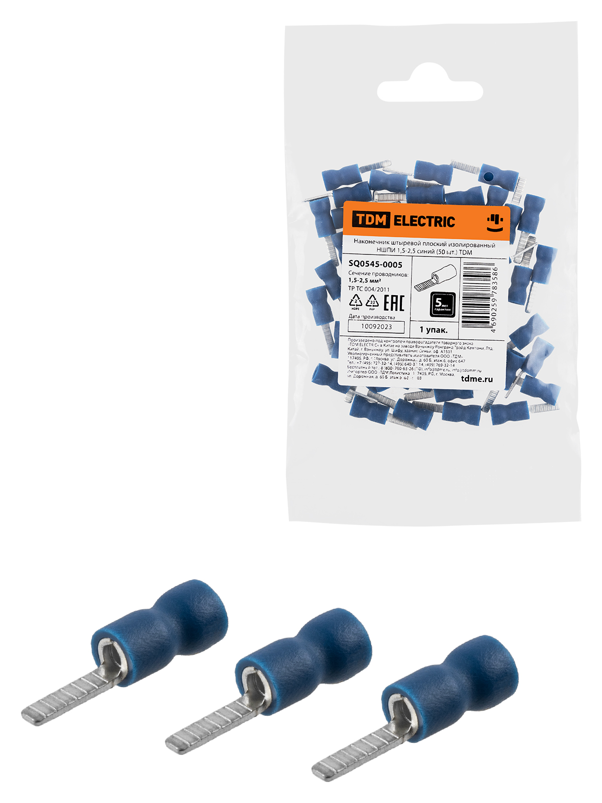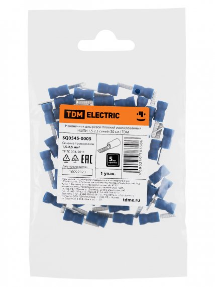 Наконечник штыревой плоский изолированный НШПИ 1,5-2,5 синий (50 шт.) TDM