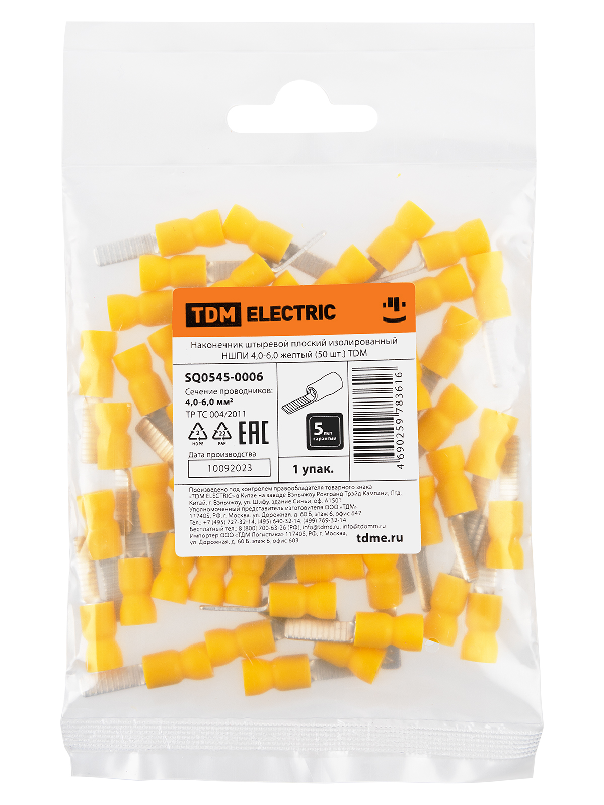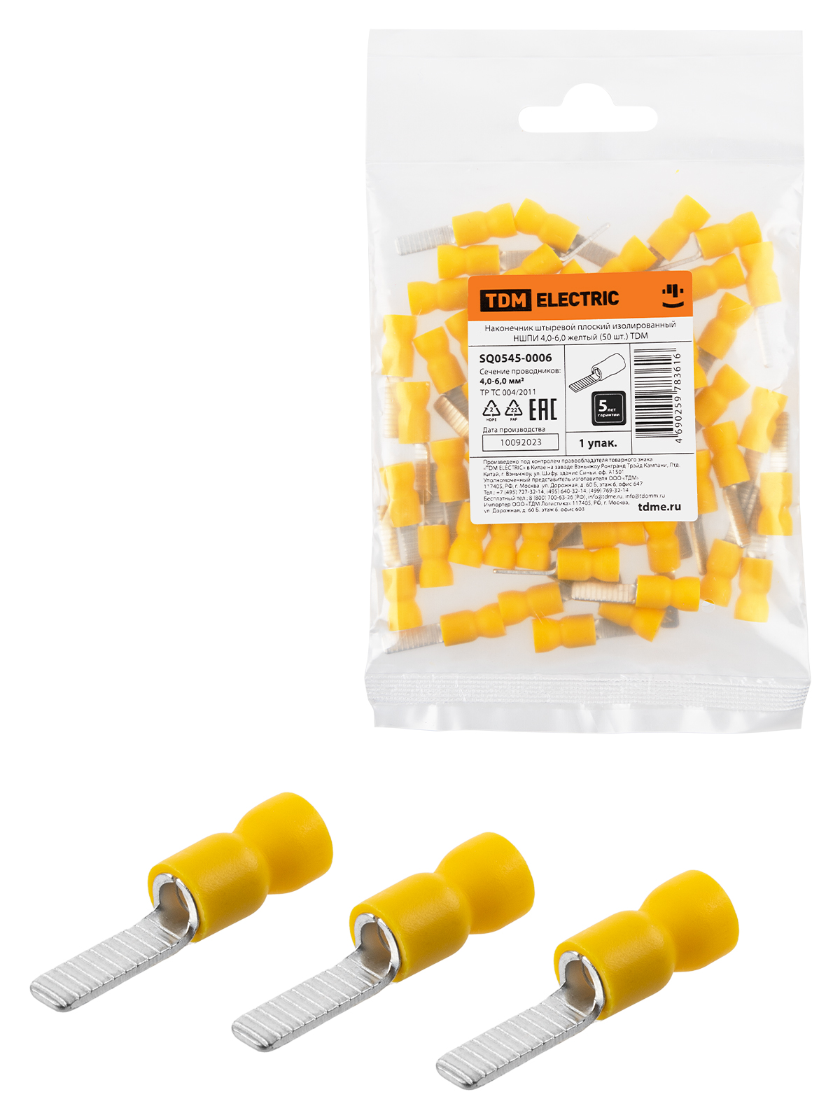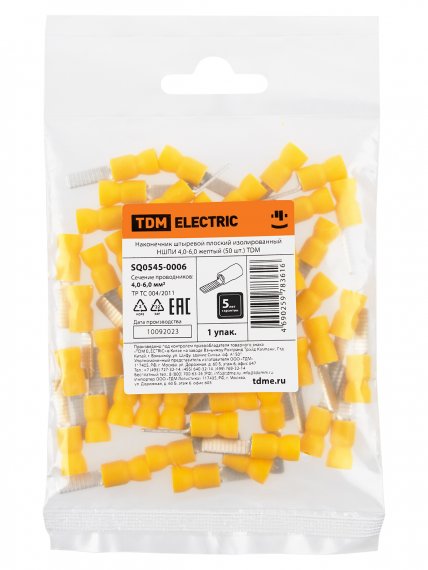 Наконечник штыревой плоский изолированный НШПИ 4,0-6,0 желтый (50 шт.) TDM