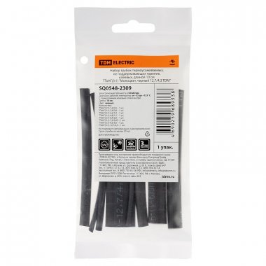 Набор трубок термоусаживаемых не поддерживающих горение клеевых 8 типоразмеров длиной 10 см TTкНГ(3:1) Моноцвет-диапазон, черный цвет от производителя TDM. Материал: полиолефин модифицированный потоком быстрых электронов. Конструкция: внутренняя поверхность покрыта термоплавким клеем. Предназначены для электрической изоляции, герметизации и защиты контактных соединений в электроэнергетике и телекоммуникациях.