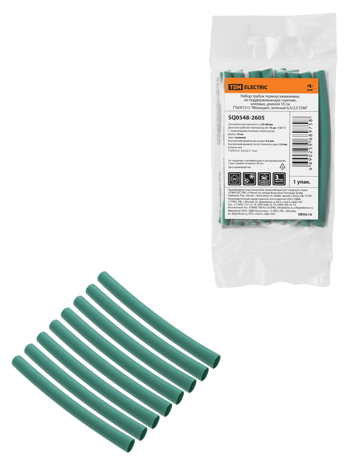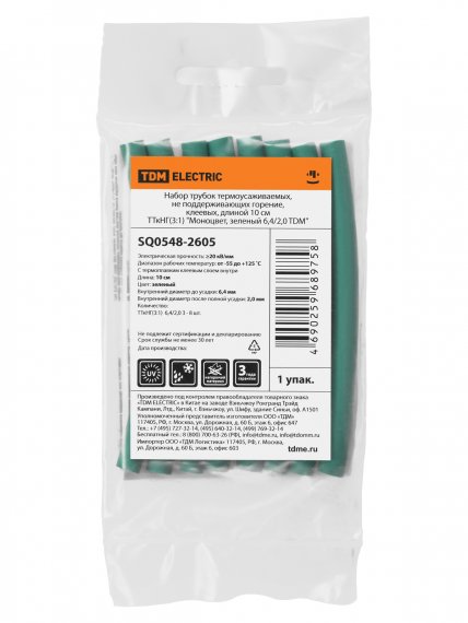 Набор трубок термоусаживаемых, клеевых ТТкНГ(3:1) "Моноцвет, зеленый 6,4/2,0 TDM"