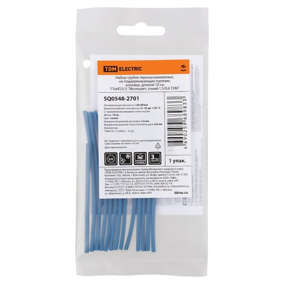 Набор трубок термоусаживаемых, клеевых "Моноцвет, синий 1,5/0,6 TDM"
