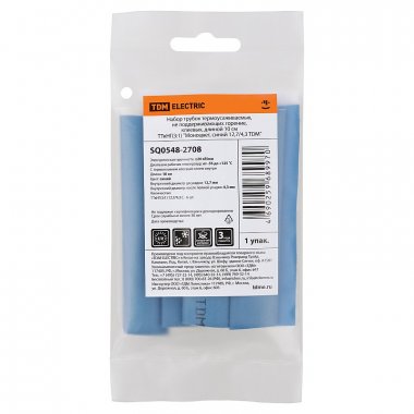 Набор трубок термоусаживаемых, не поддерживающих горение, клеевых, длиной 10 см ТТкНГ(3:1), синий, бренда TDM. Предназначен для обеспечения электрической изоляции, герметизации и защиты от коррозии контактных соединений в электроэнергетике и телекоммуникациях.