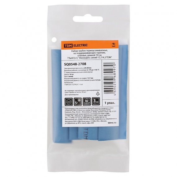 Tdm SQ0548-2708 Набор трубок термоусаживаемых, клеевых "Моноцвет, синий 12,7/4,3