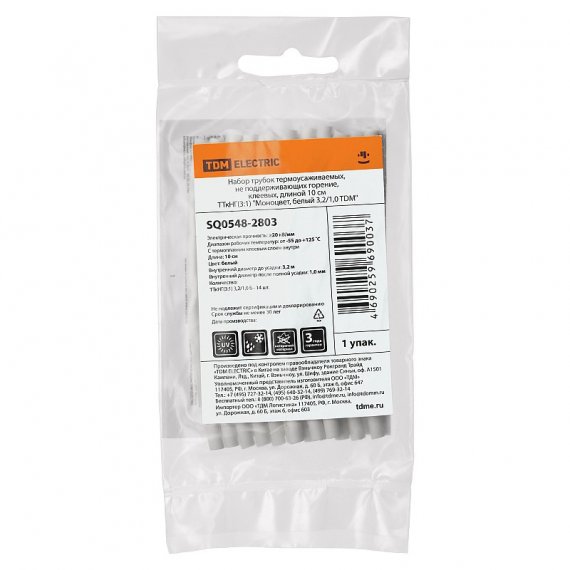 Tdm SQ0548-2803 Набор трубок термоусаживаемых, клеевых "Моноцвет, белый 3,2/1,0