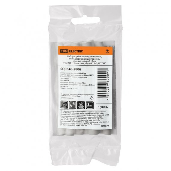 Tdm SQ0548-2806 Набор трубок термоусаживаемых, клеевых "Моноцвет, белый 7,9/2,65