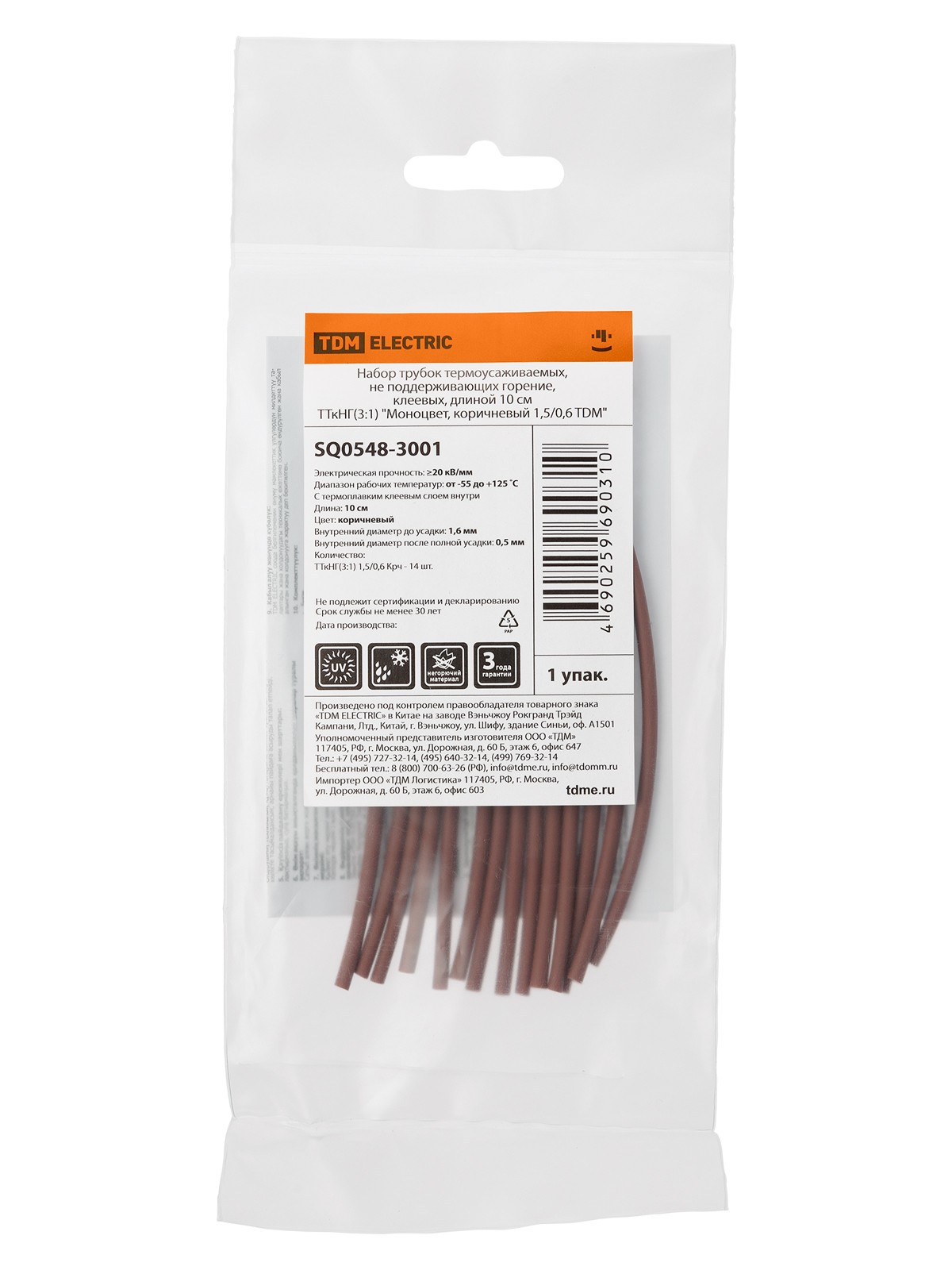 Набор трубок термоусаживаемых, клеевых "Моноцвет, коричневый 1,5/0,6 TDM"