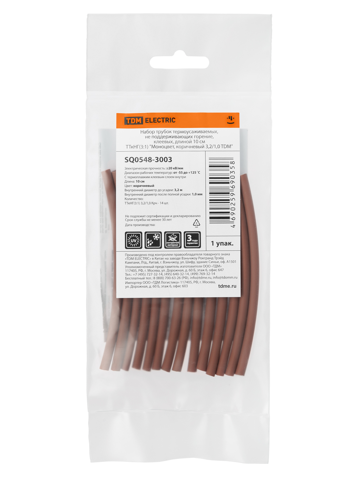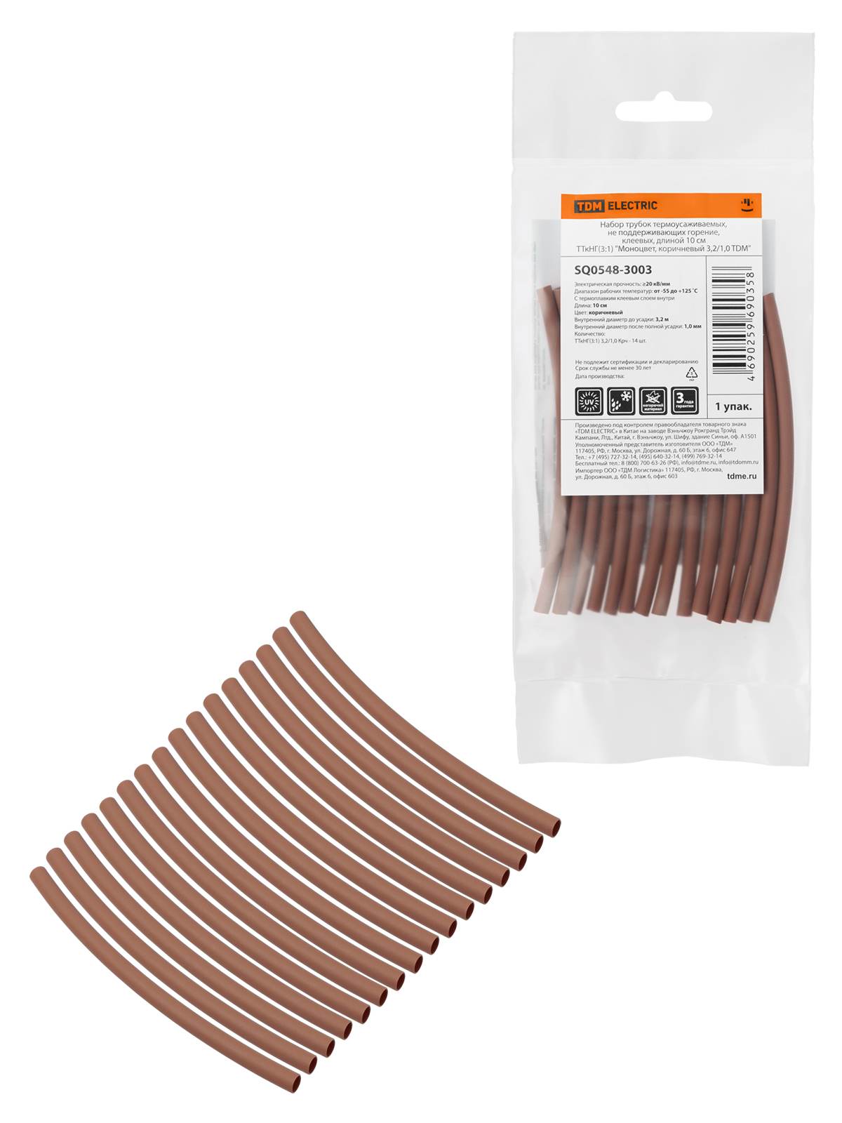 Набор трубок термоусаживаемых, клеевых "Моноцвет, коричневый 3,2/1,0 TDM"