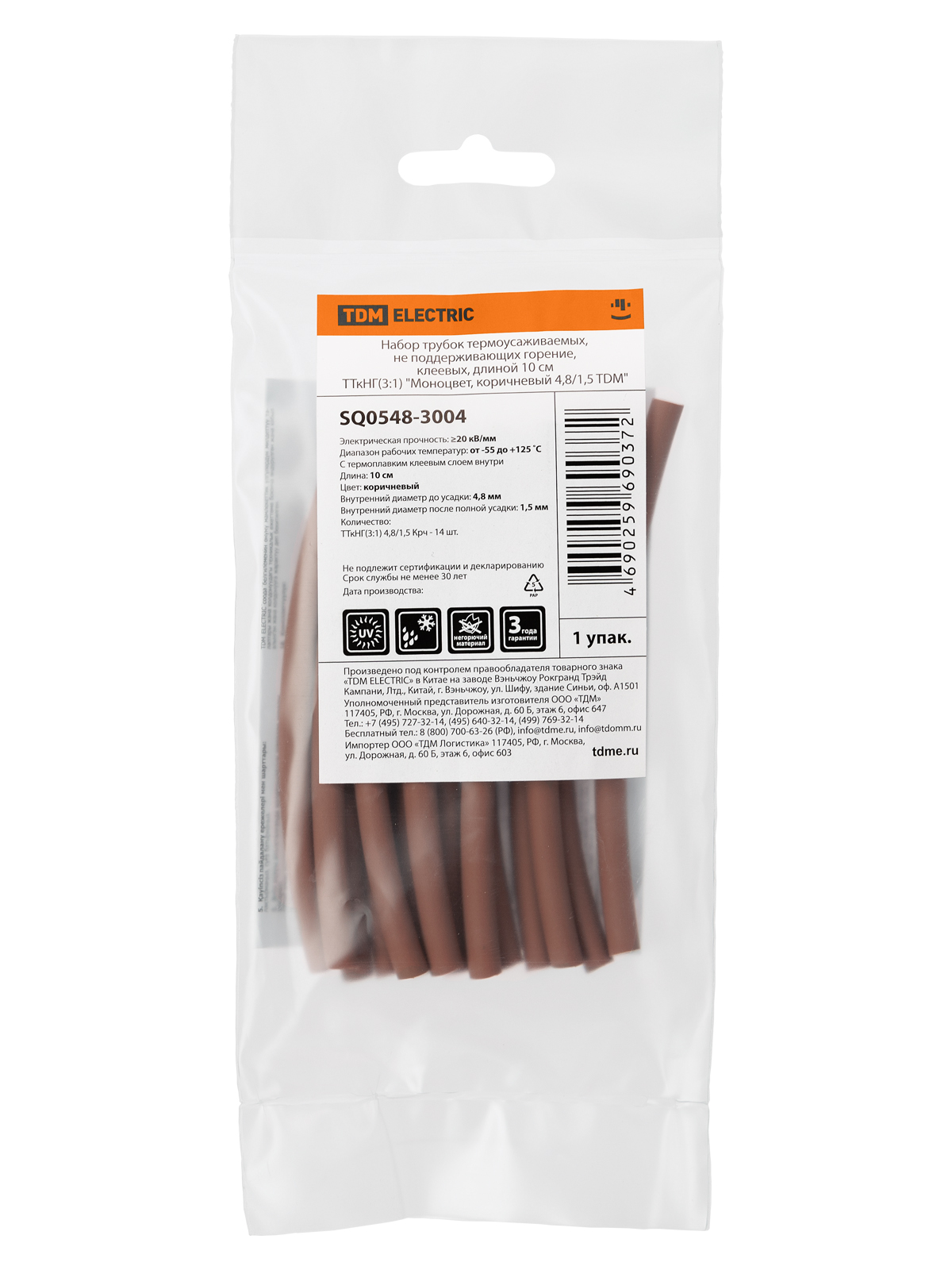 Набор трубок термоусаживаемых, клеевых "Моноцвет, коричневый 4,8/1,5 TDM"