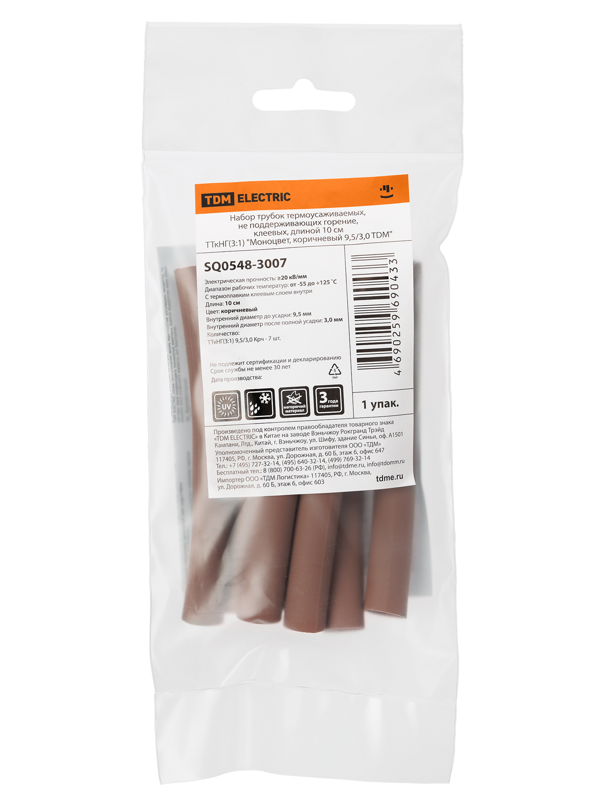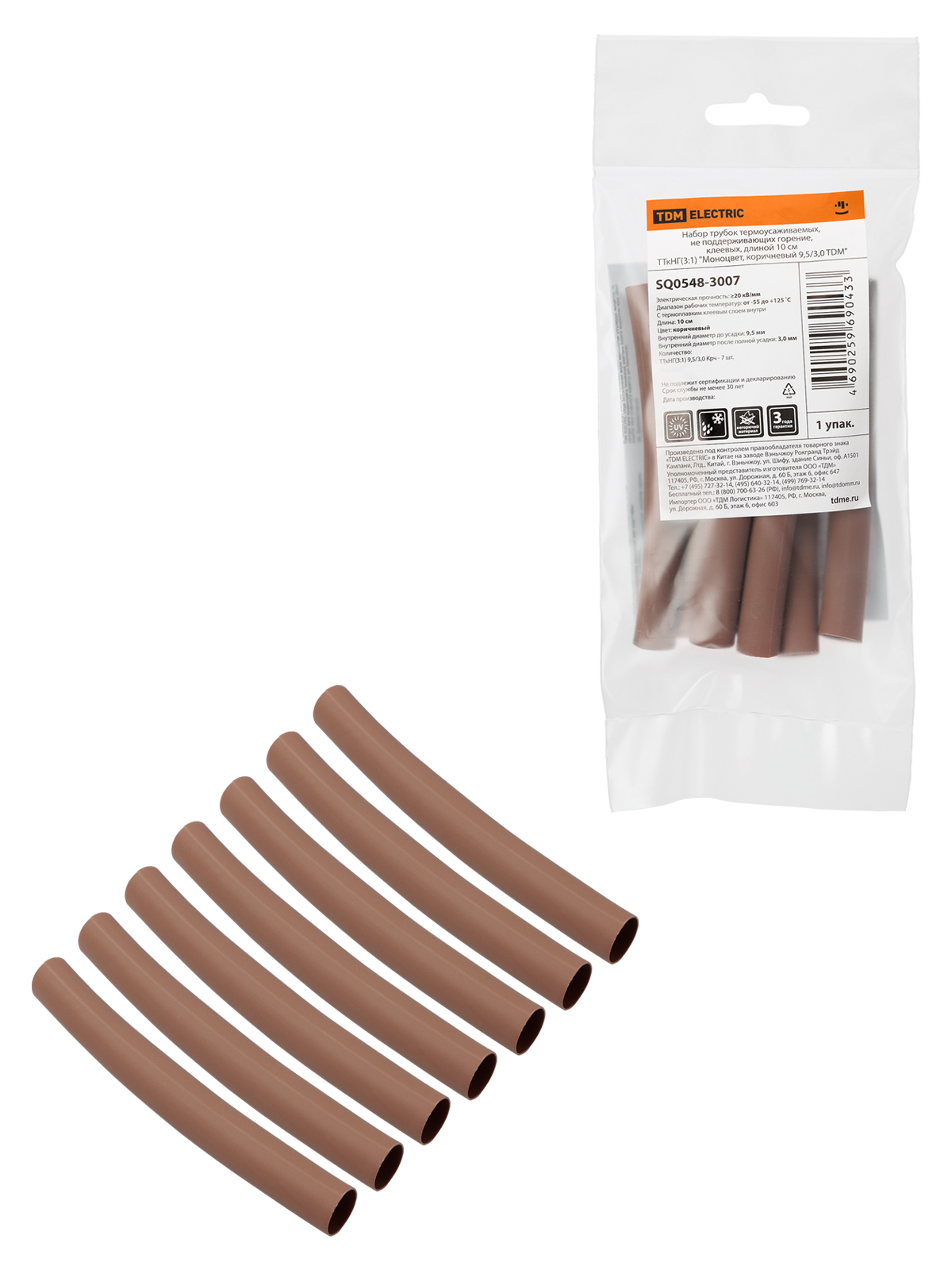 Набор трубок термоусаживаемых, клеевых "Моноцвет, коричневый 9,5/3,0 TDM"