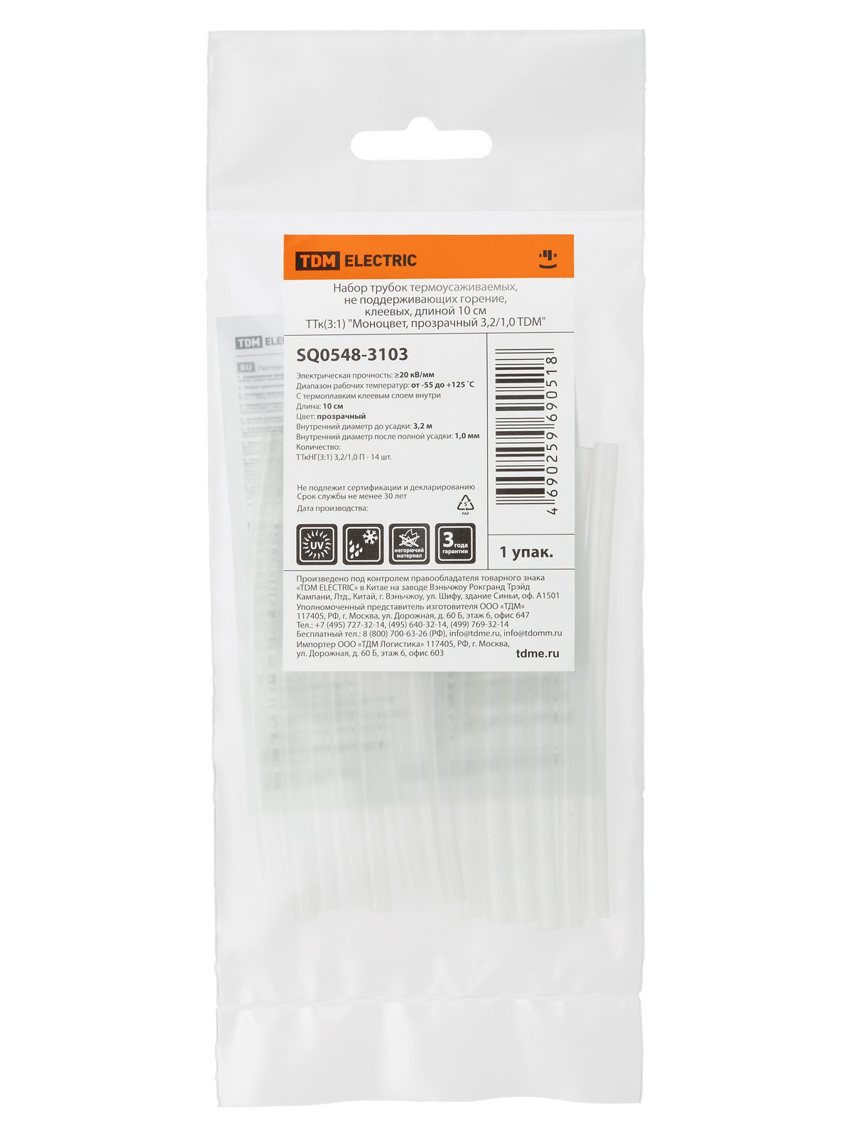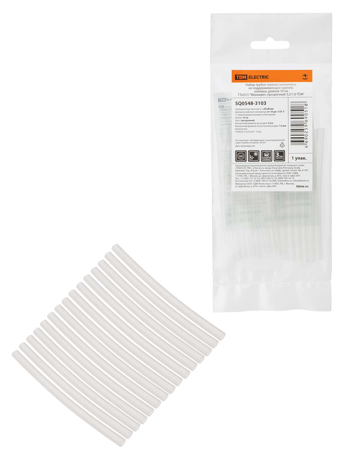 Набор трубок термоусаживаемых, клеевых ТТк(3:1) "Моноцвет, прозрачный 3,2/1,0 TDM"