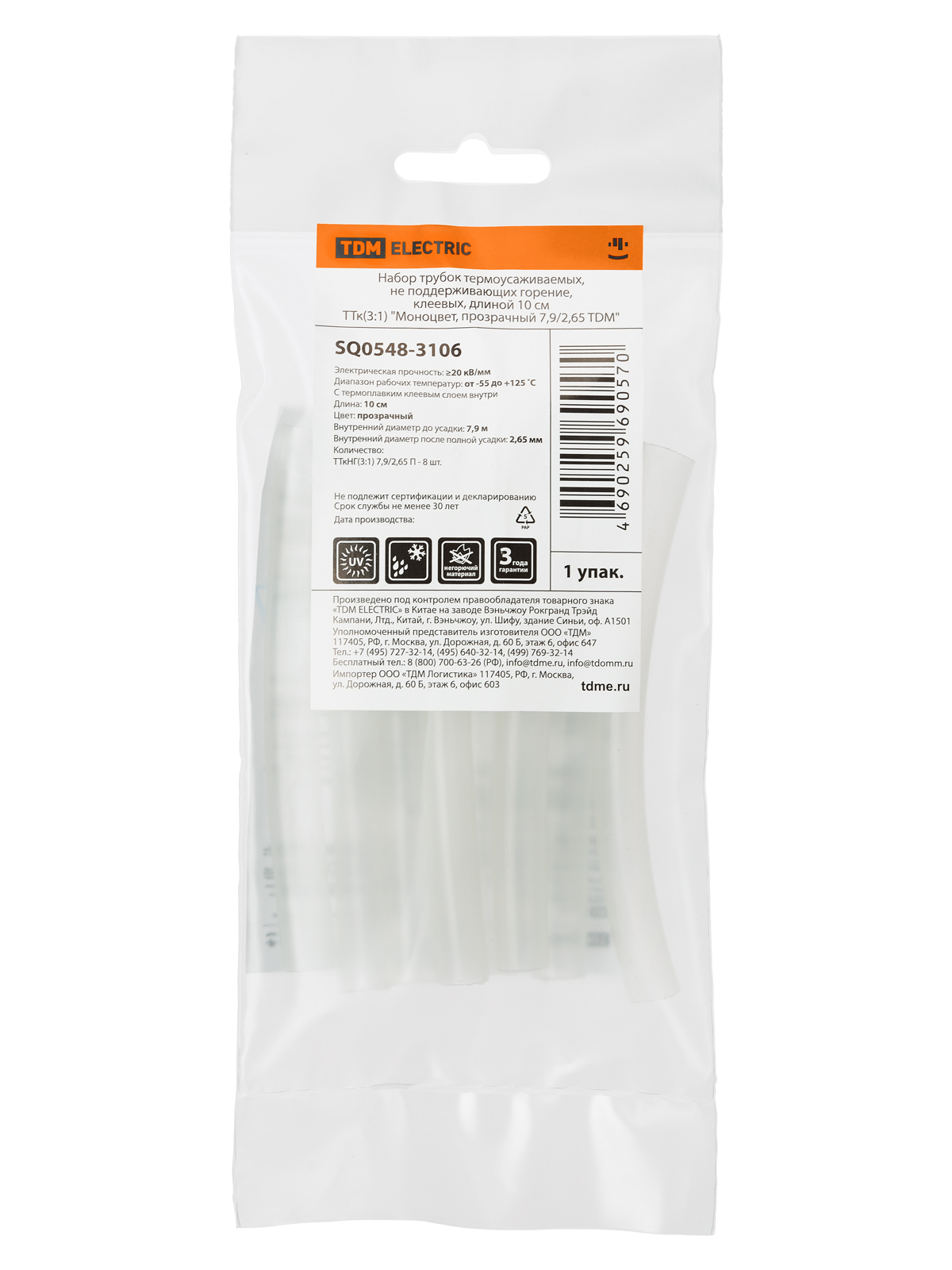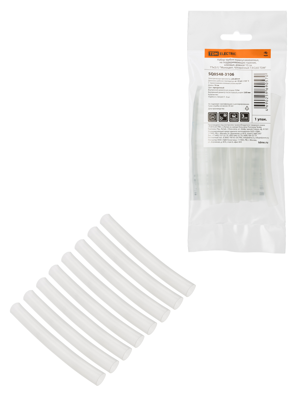 Набор трубок термоусаживаемых, клеевых ТТк(3:1) "Моноцвет, прозрачный 7,9/2,65 TDM"