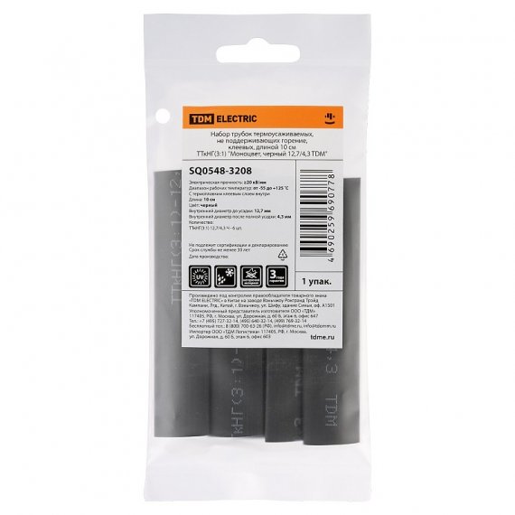 Tdm SQ0548-3208 Набор трубок термоусаживаемых, клеевых "Моноцвет, черный 12,7/4,3