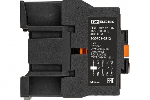 Технические характеристики TDM рпл-140м ухл4б, 16а, 36в 50гц, 4но SQ0701-0512