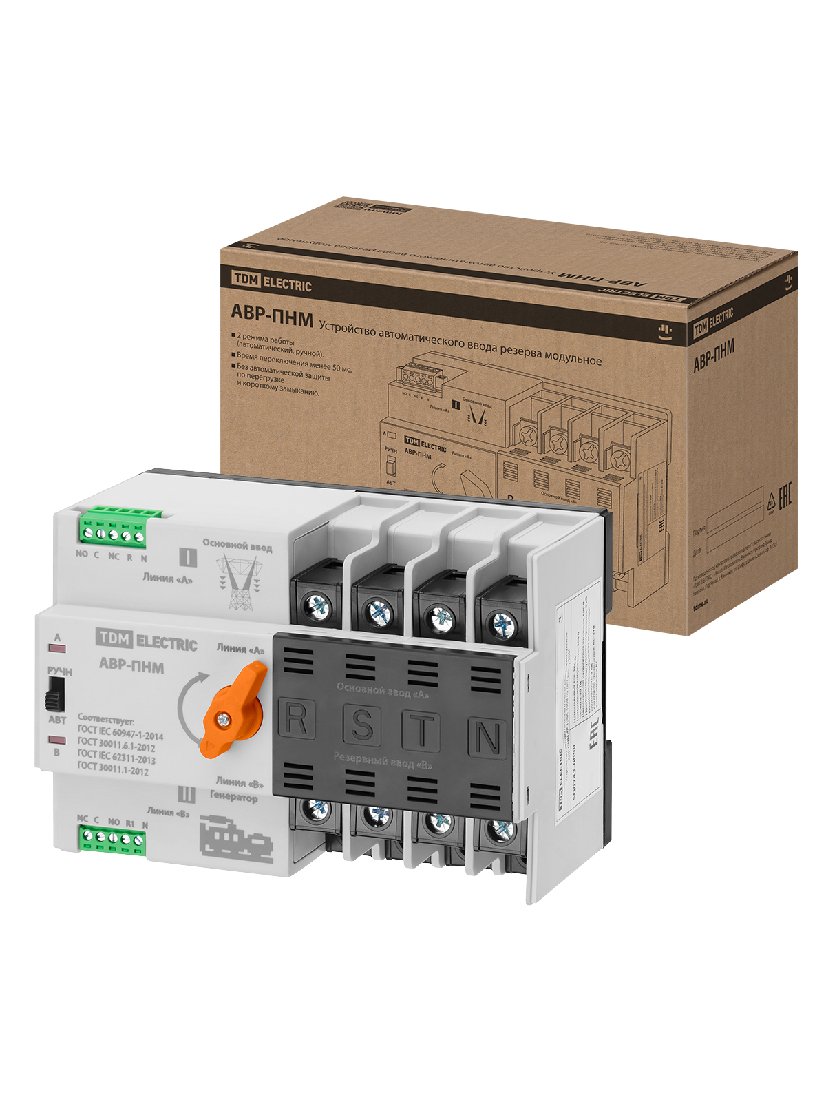 Устройство автоматического ввода резерва модульное АВР-ПНM 4P 100А 380В на DIN-рейку TDM