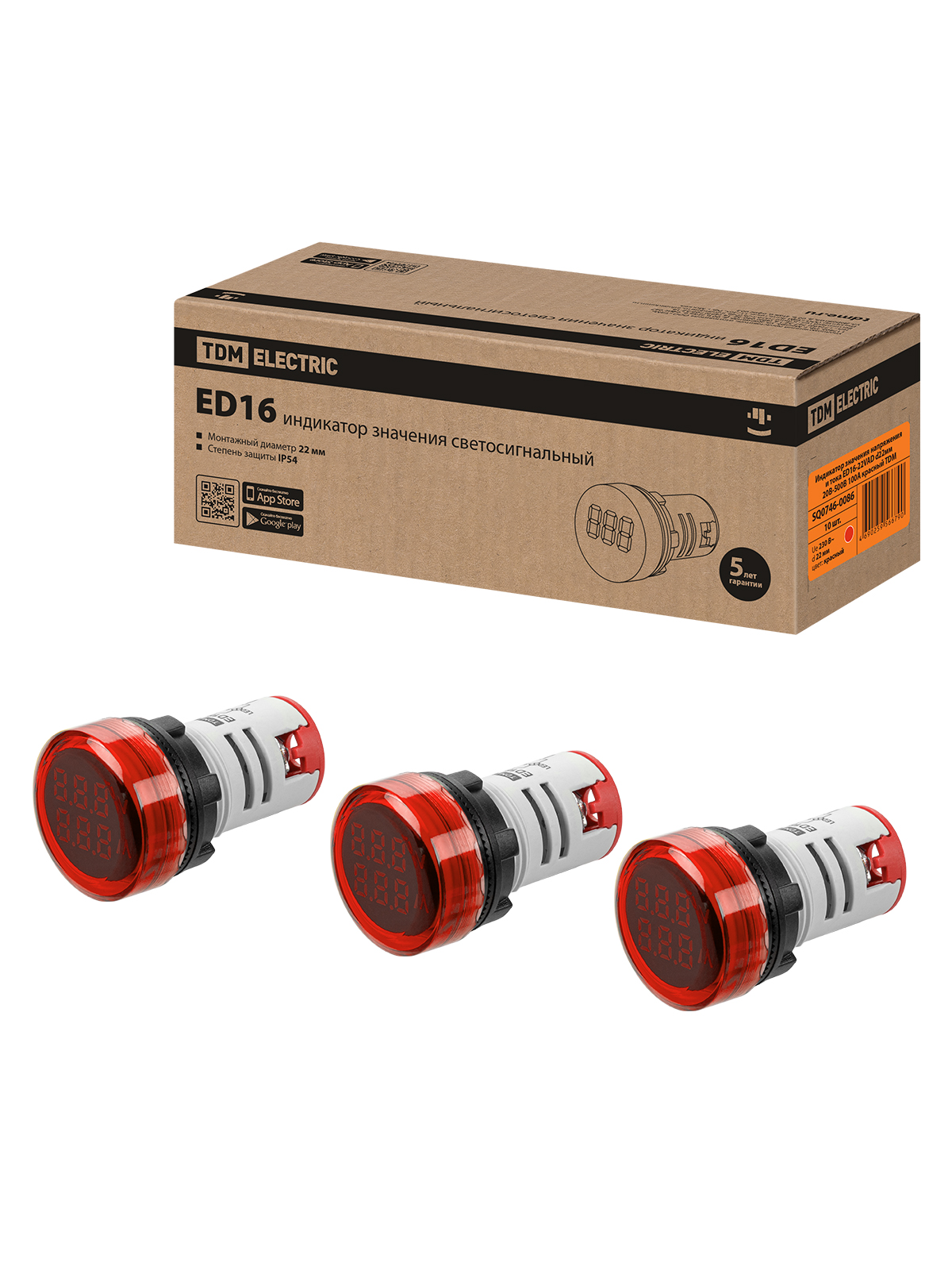 Tdm SQ0746-0086 Индикатор значения напряжения и тока ED16-22VAD d22мм 20В-500В 100А