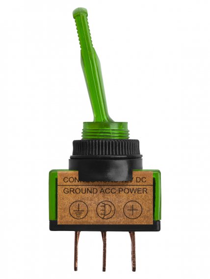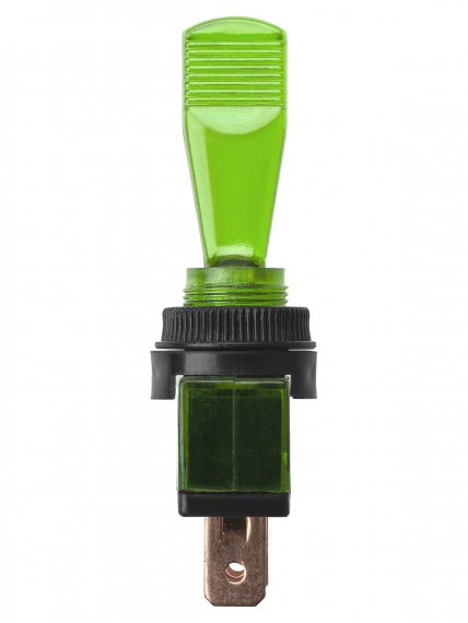 Выключатель-тумблер ASW-13D 1P 12В AC/DC 20А (3c) ON-OFF с фиксацией с зеленой LED подсветкой TDM