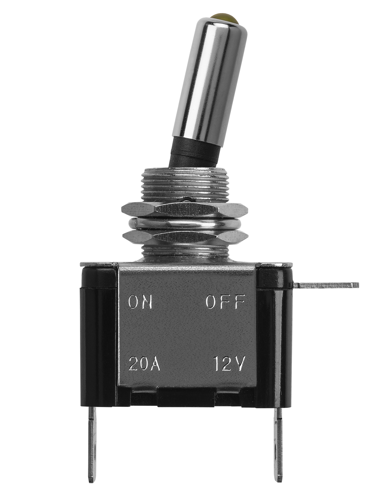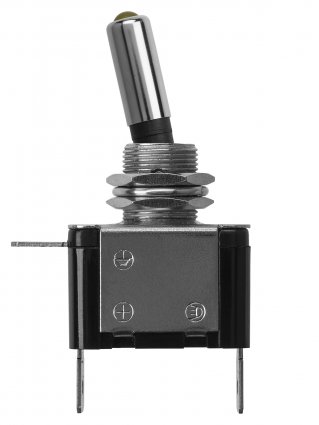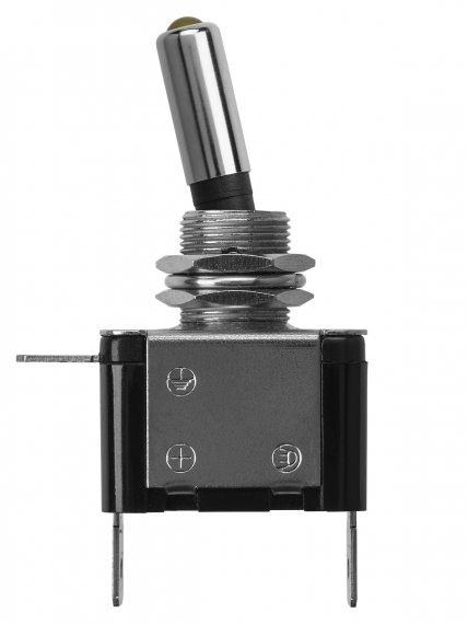Выключатель-тумблер ASW-07D 1P 12В AC/DC 25А (3c) ON-OFF с фиксацией с желтой LED подсветкой TDM