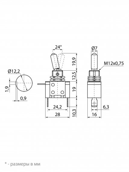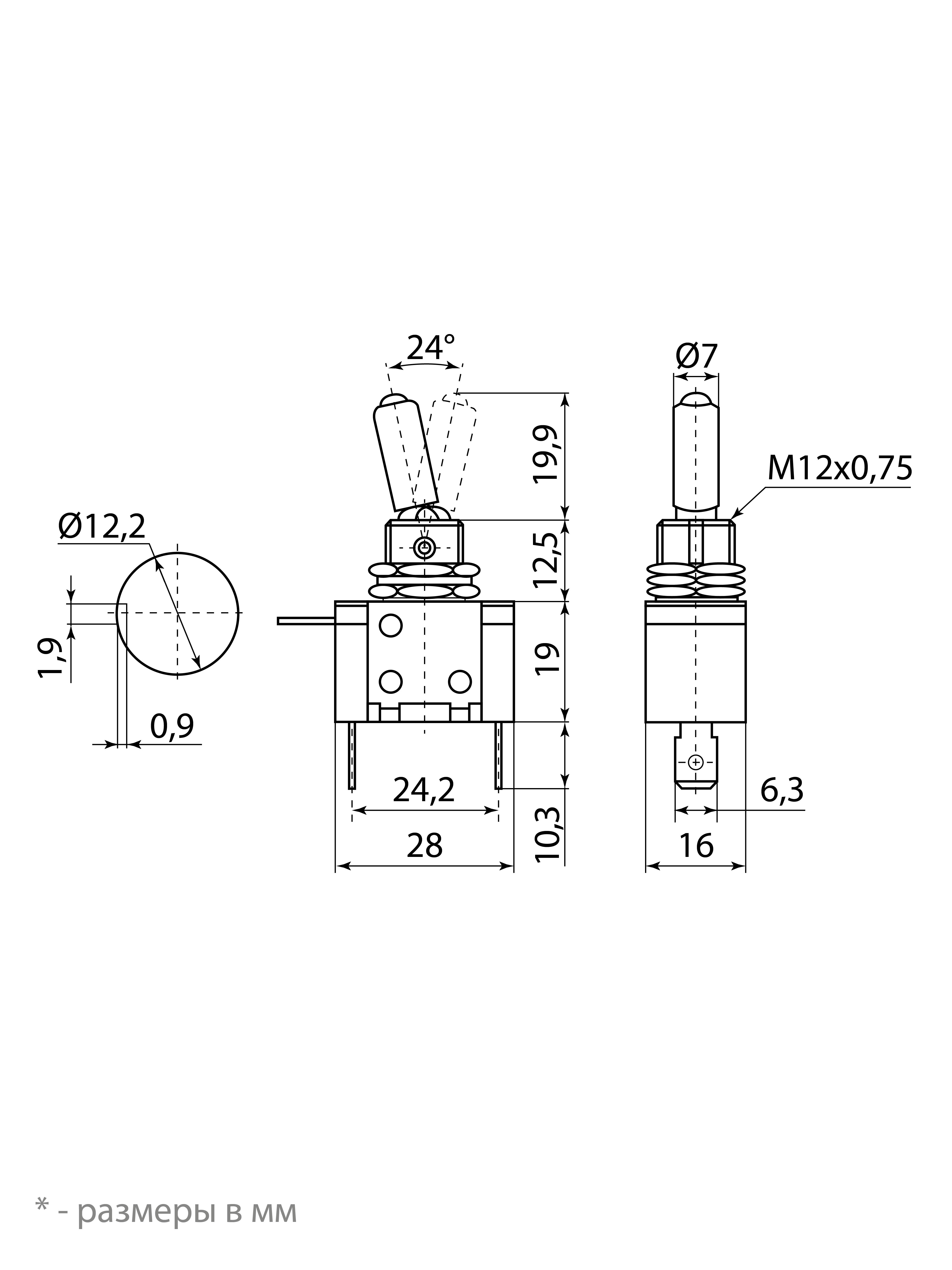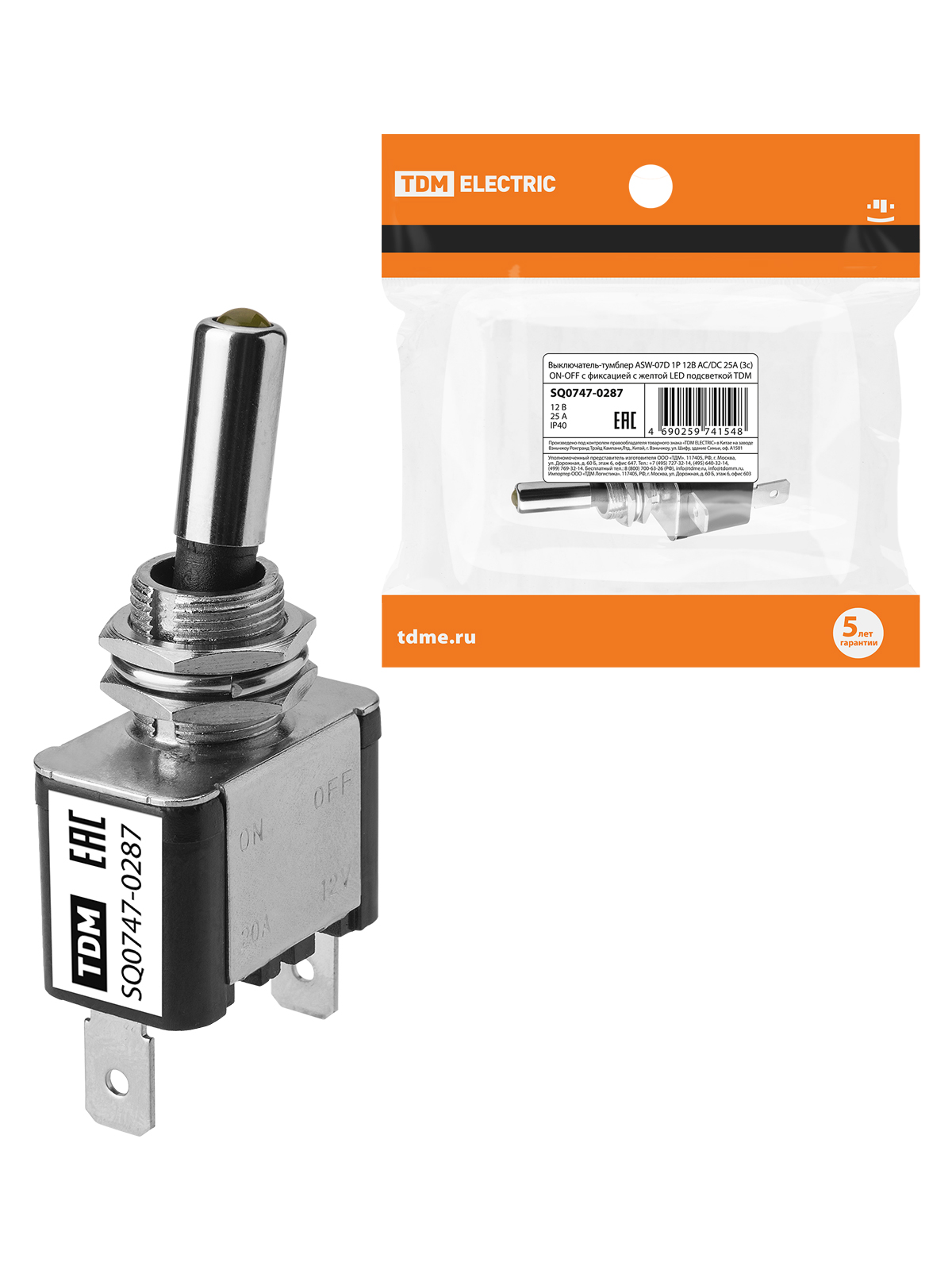 Tdm SQ0747-0287 Выключатель-тумблер ASW-07D 1P 12В AC/DC 25А (3c) ON-OFF