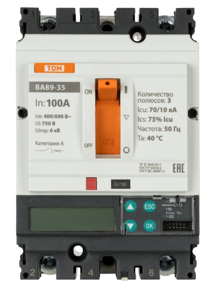 ВА89-35 3Р 100А 70кА (ЭР-ЖК дисплей) TDM