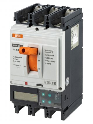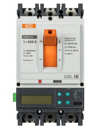 Tdm Автоматический выключатель ВА89-37 3Р 630А 70кА (ЭР-ЖК дисплей) с модулем связи RS-485 МС1, SQ0751-0145