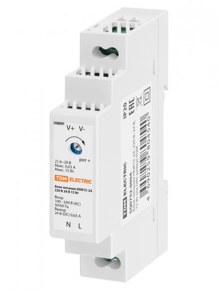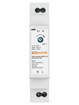 Блок питания HDR15-24, 220 В, 24 В, 15 Вт (на DIN-рейку) TDM