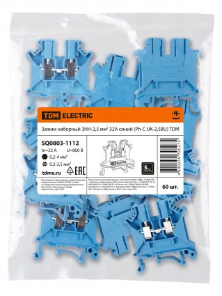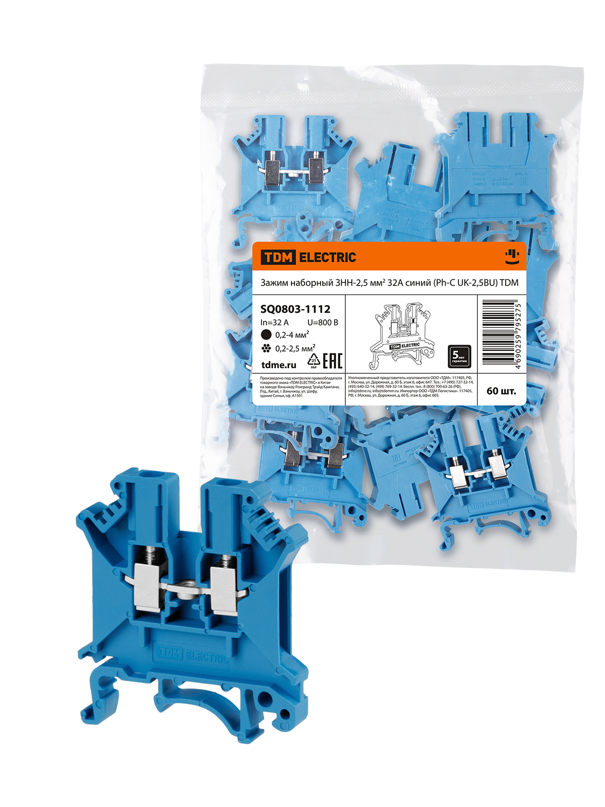 Tdm SQ0803-1112 Зажим наборный ЗНН-2,5мм2 32А синий (Ph-C UK-2,5BU)