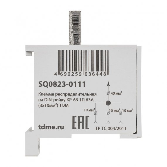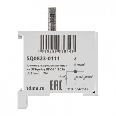 Tdm SQ0823-0111 Клемма распределительная на DIN-рейку КР-63 1П 63А (3х10мм?)