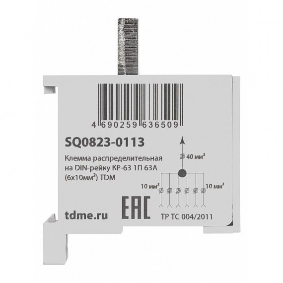 Tdm SQ0823-0113 Клемма распределительная на DIN-рейку КР-63 1П 63А (6х10мм?)