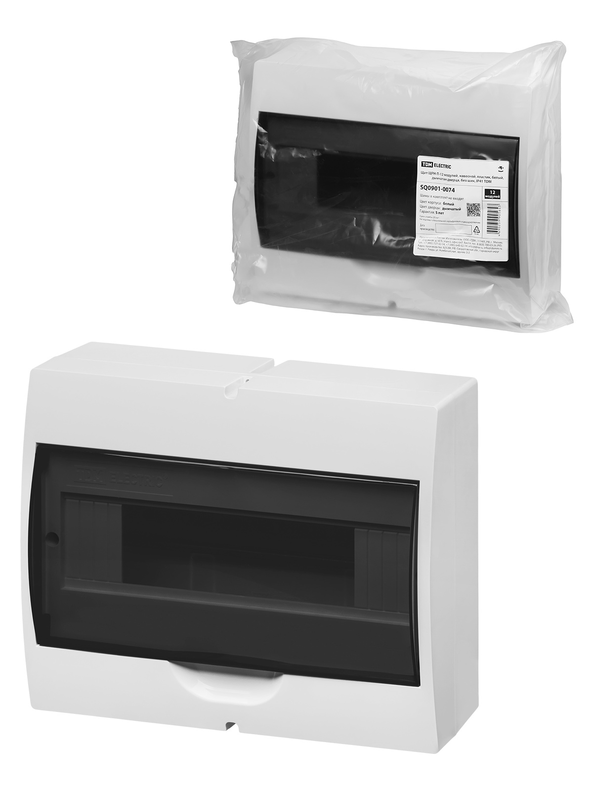 Tdm SQ0901-0074 Щит ЩРН-П-12 модулей, навесной, пластик, белый, дымчатая дверца