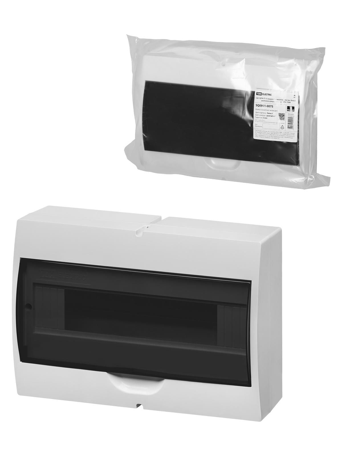 Tdm SQ0901-0075 Щит ЩРН-П-15 модулей, навесной, пластик, белый, дымчатая дверца