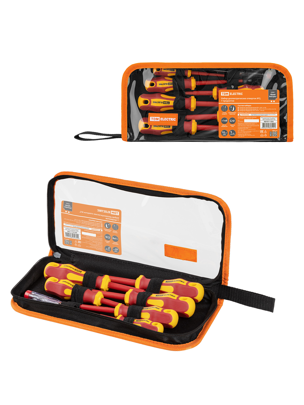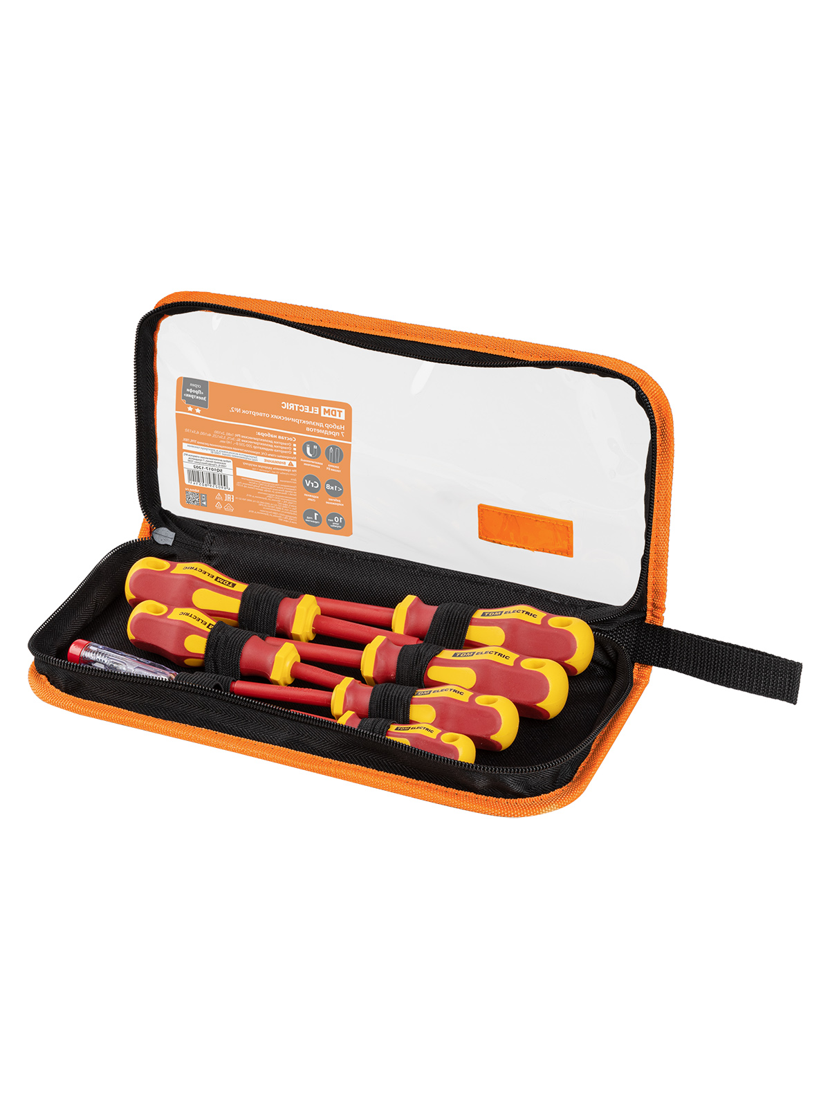Набор диэлектрических отверток №2, тканевый пенал, 7 предметов, 1000 В, «ПрофиЭлектрик» TDM