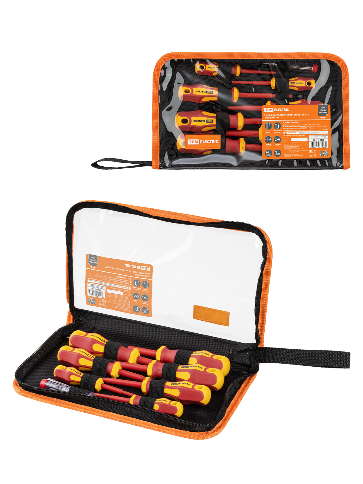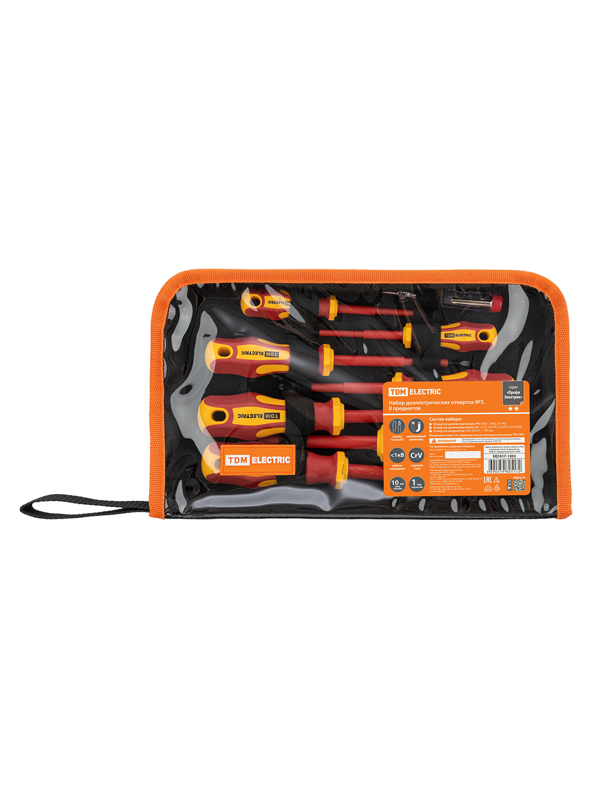 Набор диэлектрических отверток №3, тканевый пенал, 8 предметов, 1000 В, «ПрофиЭлектрик» TDM