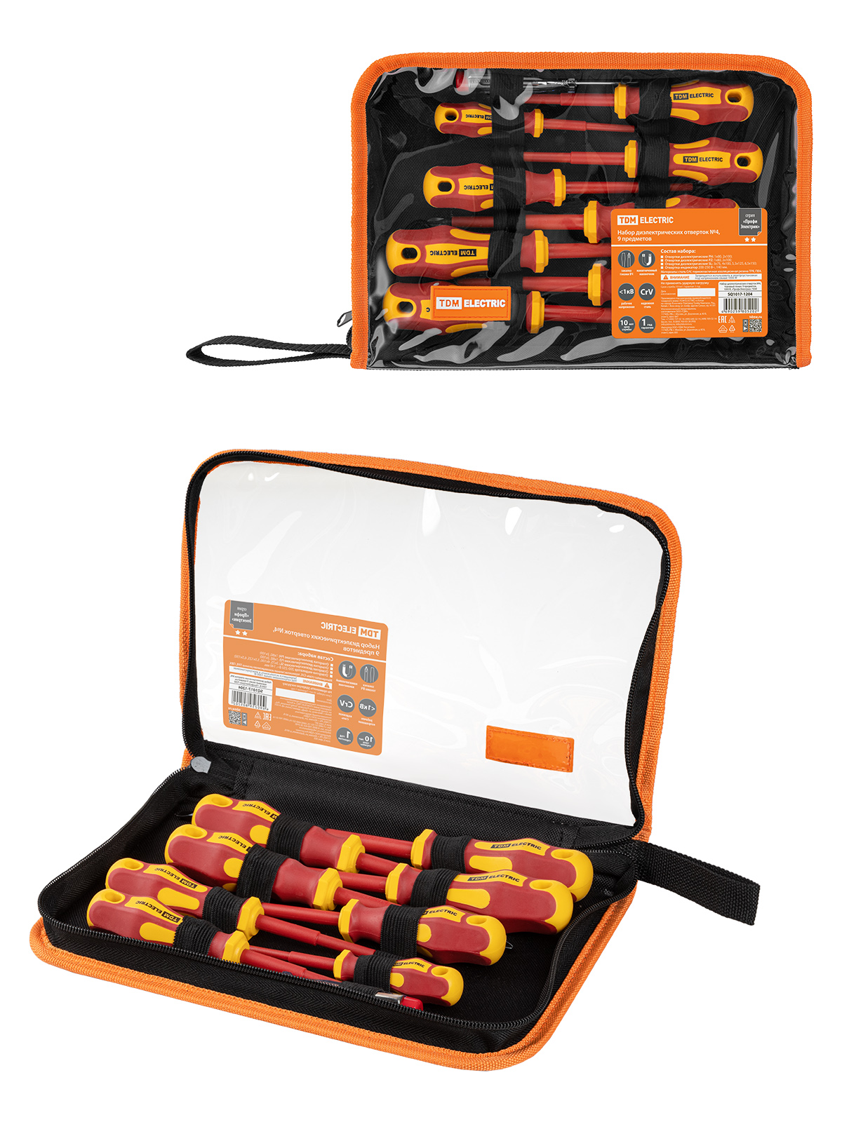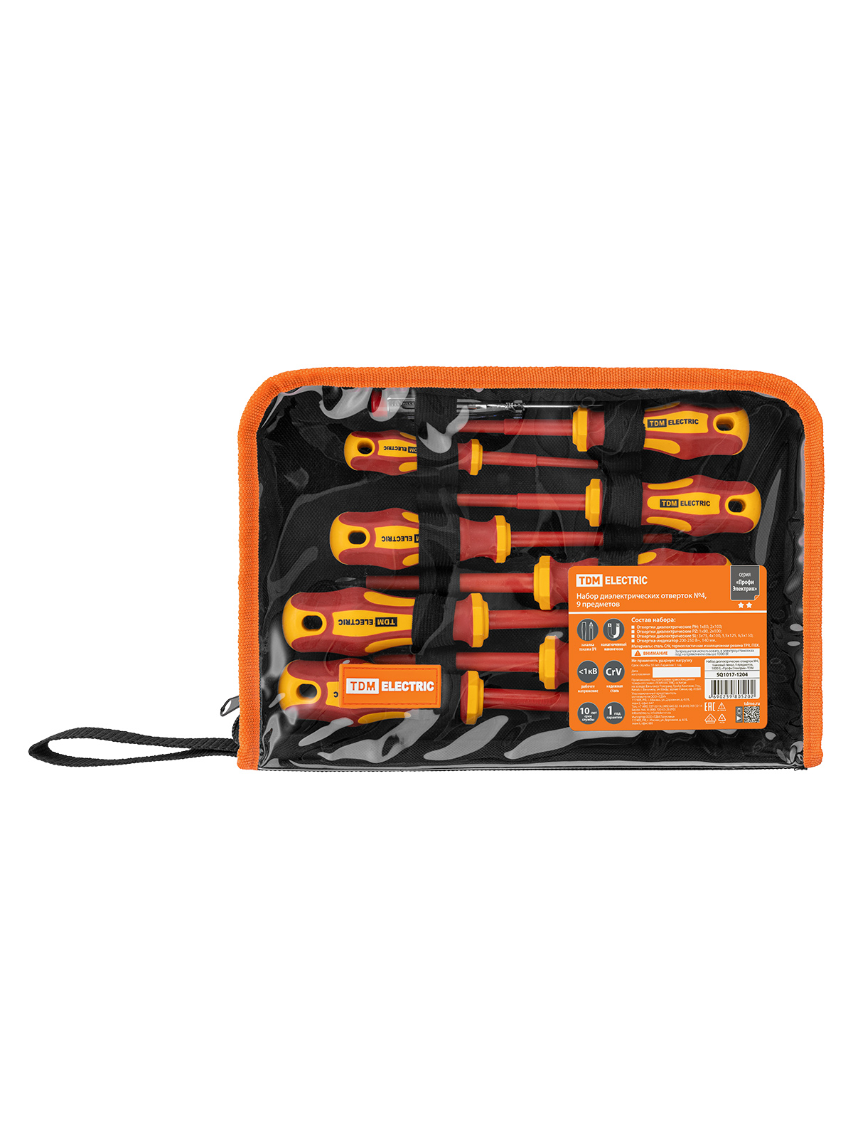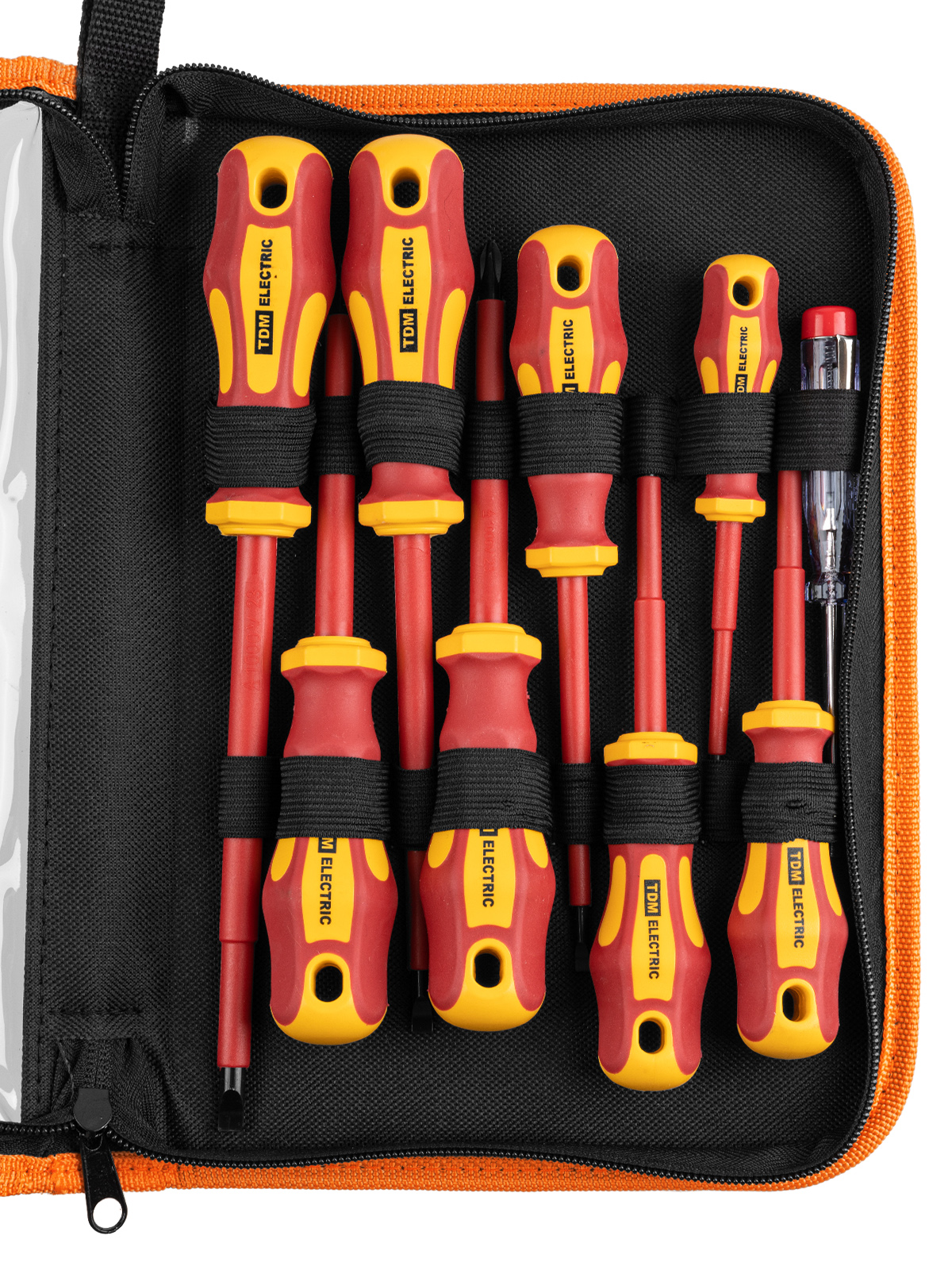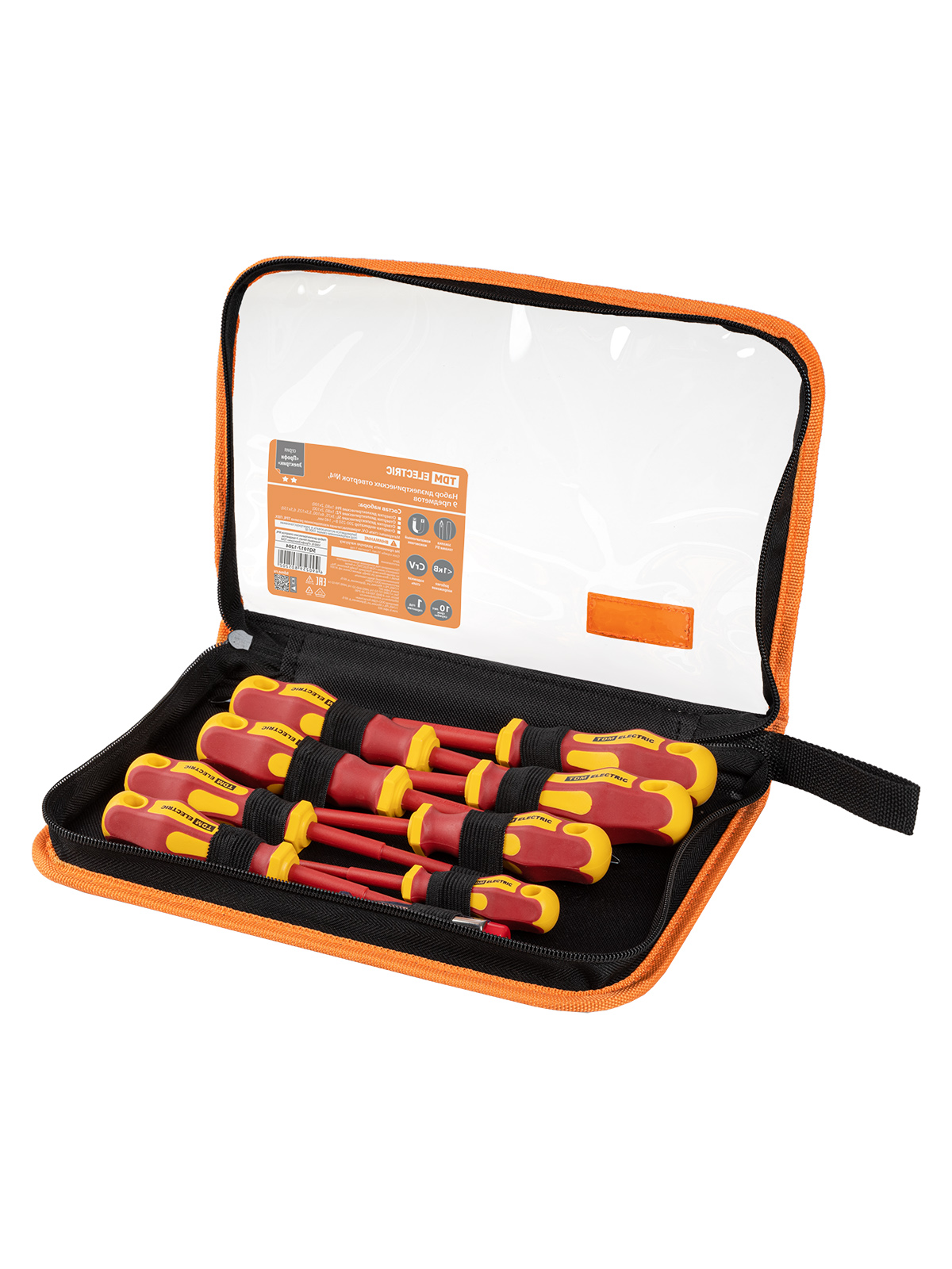 Набор диэлектрических отверток №4, тканевый пенал, 9 предметов, 1000 В, «ПрофиЭлектрик» TDM