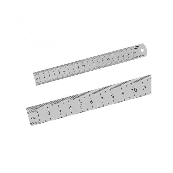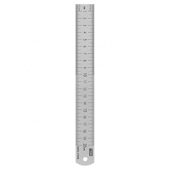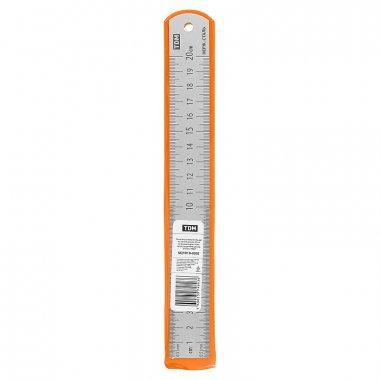 Линейка измерительная металлическая 20 см, нержавеющая сталь, двухсторонняя шкала, "Рубин" TDM