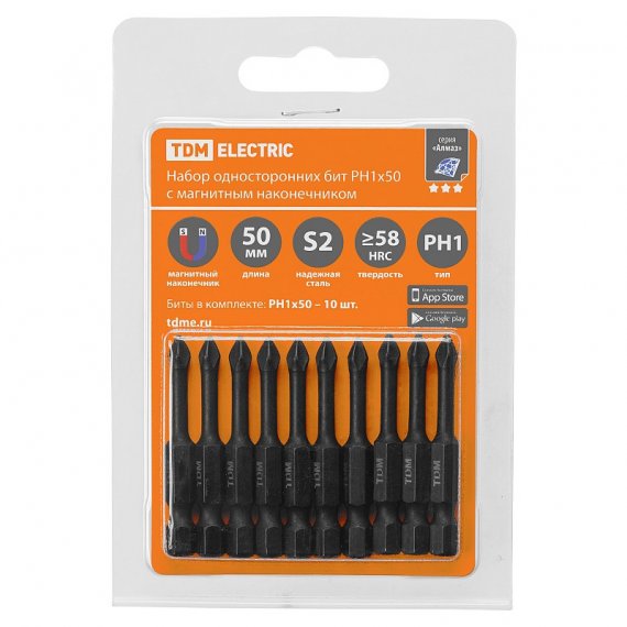 Tdm SQ1019-0424 Набор бит PH1x50, односторонних, сталь S2, Е 1/4", намагниченные, торсионные