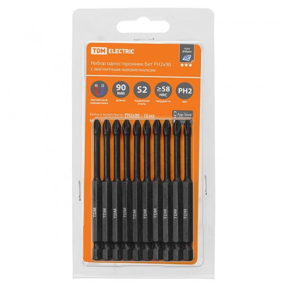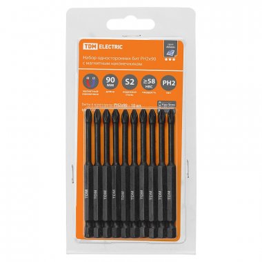 Набор бит PH2x90, односторонних, сталь S2, Е 1/4", намагниченные, торсионные, 10 шт., «Алмаз» TDM