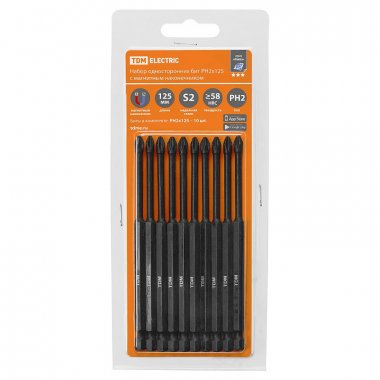 Набор бит PH2x125, односторонних, сталь S2, Е 1/4", намагниченные, торсионные, 10 шт., «Алмаз» TDM