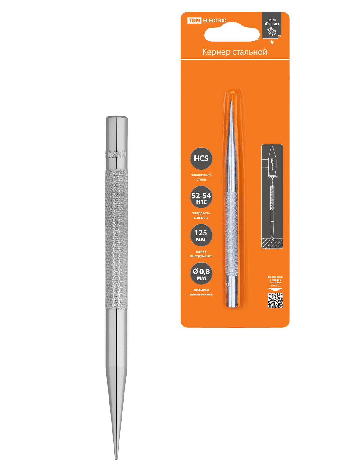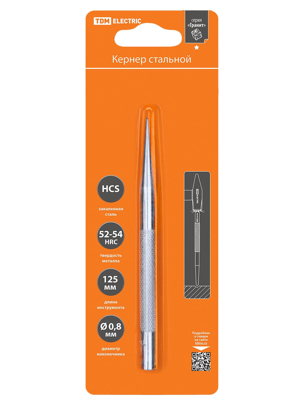 Кернер Ø0,8 мм, длина 125 мм, высокоуглеродистая сталь, блистер "Гранит" TDM