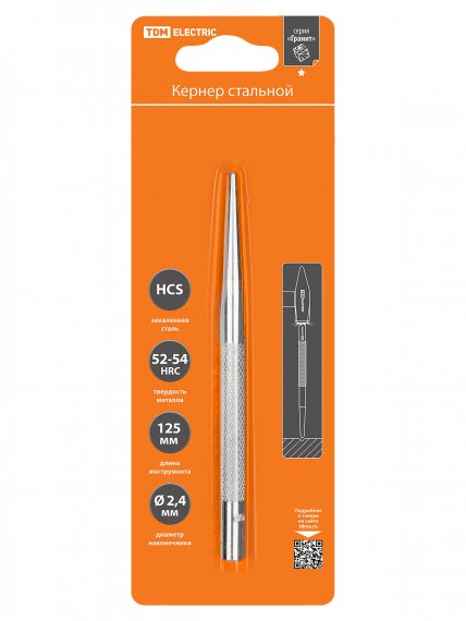 Tdm SQ1022-0503 Кернер Ø2,4 мм, длина 125 мм, высокоуглеродистая сталь