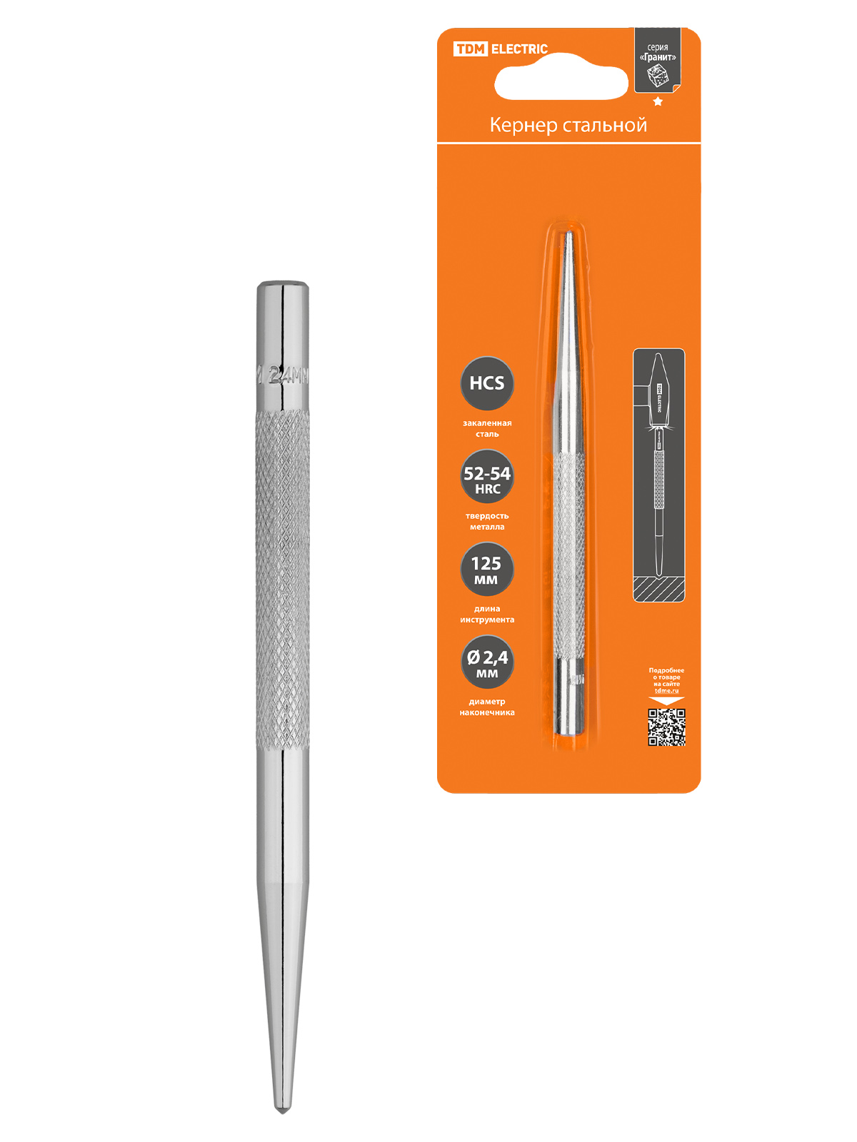 Кернер Ø2,4 мм, длина 125 мм, высокоуглеродистая сталь, блистер "Гранит" TDM