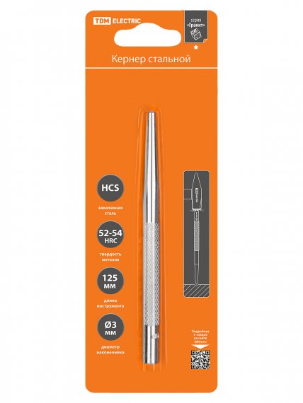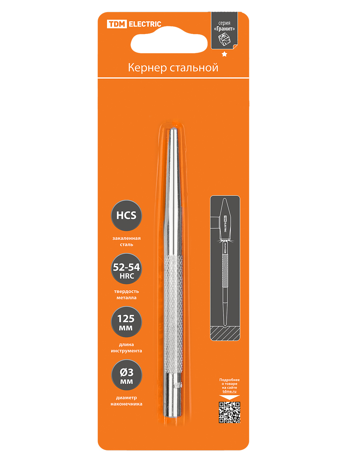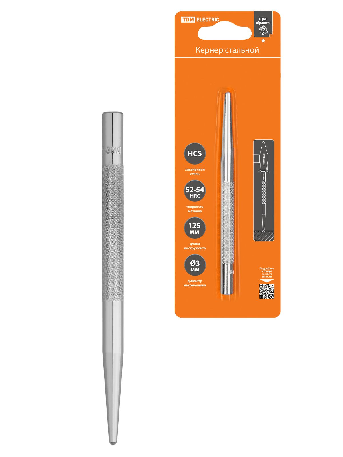 Кернер Ø3 мм, длина 125 мм, высокоуглеродистая сталь, блистер "Гранит" TDM