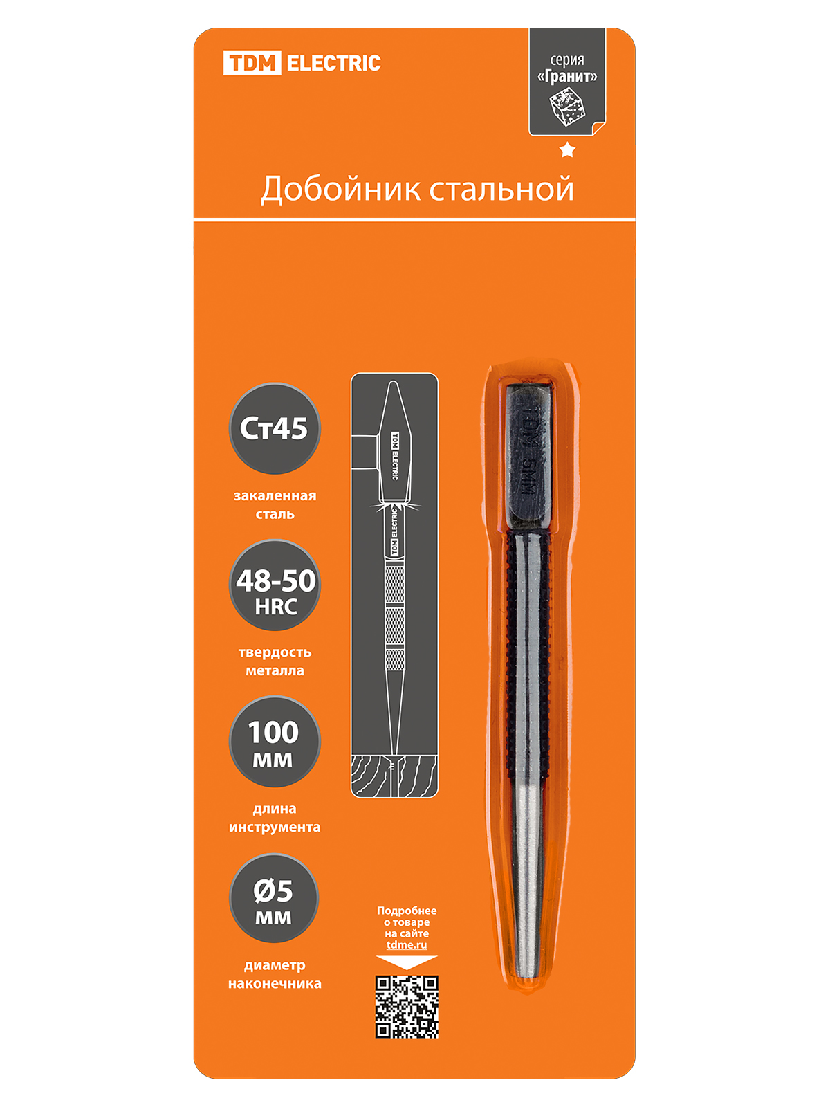 Добойник Ø5 мм, длина 100 мм, углеродистая сталь, блистер "Гранит" TDM