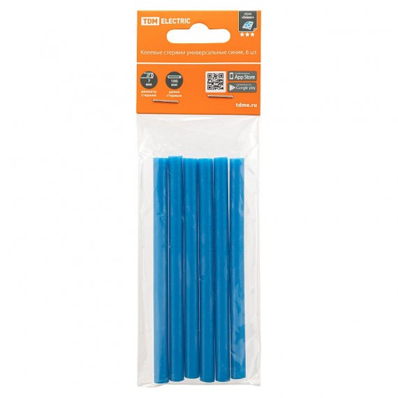 Клеевые стержни универсальные синие, 7 мм x 100 мм, 6 шт, "Алмаз" TDM