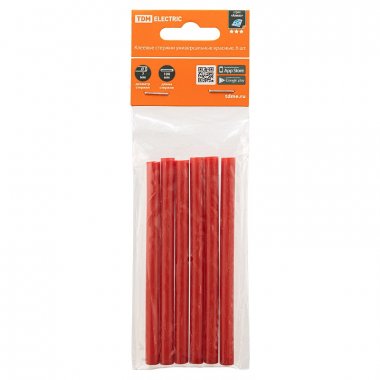 Клеевые стержни универсальные красные, 7 мм x 100 мм, 6 шт, "Алмаз" TDM